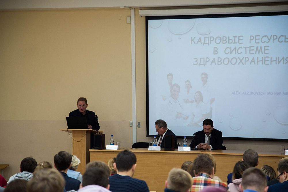 During the lecture, Alex Aizikovich highlighted a number of acute social issues related to the sphere of medicine: dissatisfaction with the quality, quantity, and cost of services, high expenses for the development of medicine and the degree of state participation in social spheres in order to maintain market equilibrium. According to the lecturer, the personnel affairs in medicine are critical and in many respects, it is due to the fact that 15-20 years are needed to train a good doctor. In parallel, Alex Aizikovich spoke about the existing problems in the field of medicine: the aging of staff, the ratio of doctors and nurses in hospitals, the change and development of technologies, the improvement of training, and other issues that need to be considered and clarified.