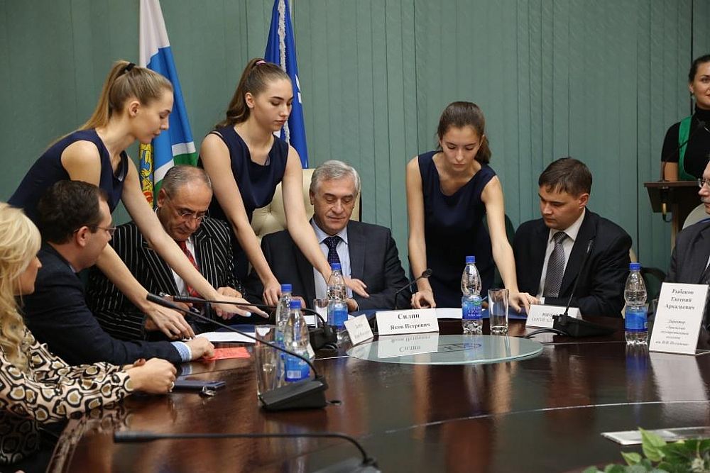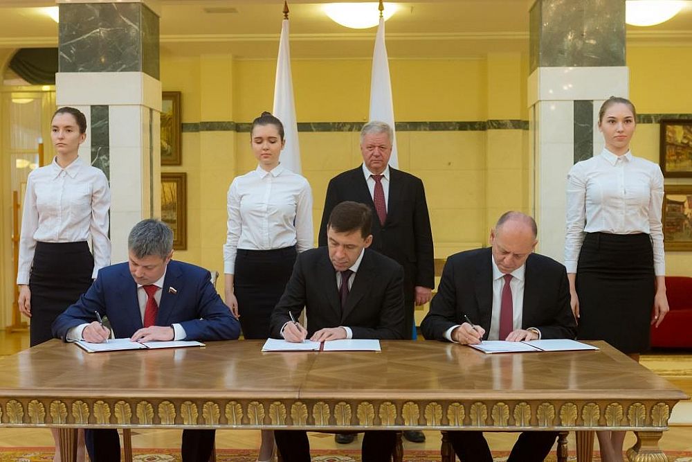 February 1, Miss USUE contestants visited the Governor's residence where they took part in the signing ceremony of the trilateral agreement on regulating social and labor relations between the Federation of Trade Unions of the Sverdlovsk region, the Sverdlovsk Regional Union of Industrialists and Entrepreneurs, and the government of the Sverdlovsk region for 2018-2020.