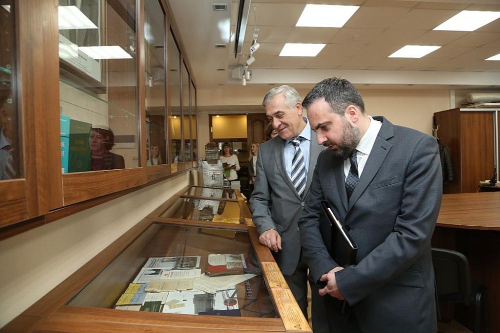 The USUE Rector Yakov Silin and Vice-Rector for Social Work Roman Krasnov gave a tour around the University for the Consul General. Members of the search group "Honor and Memory" showed the distinguished guest an exhibition dedicated to their trips to the "Vigils of Memory". Then he visited the University Museum, which displays interesting historical exhibits for the 50th anniversary of the University. After that, a meeting with the students took place.
