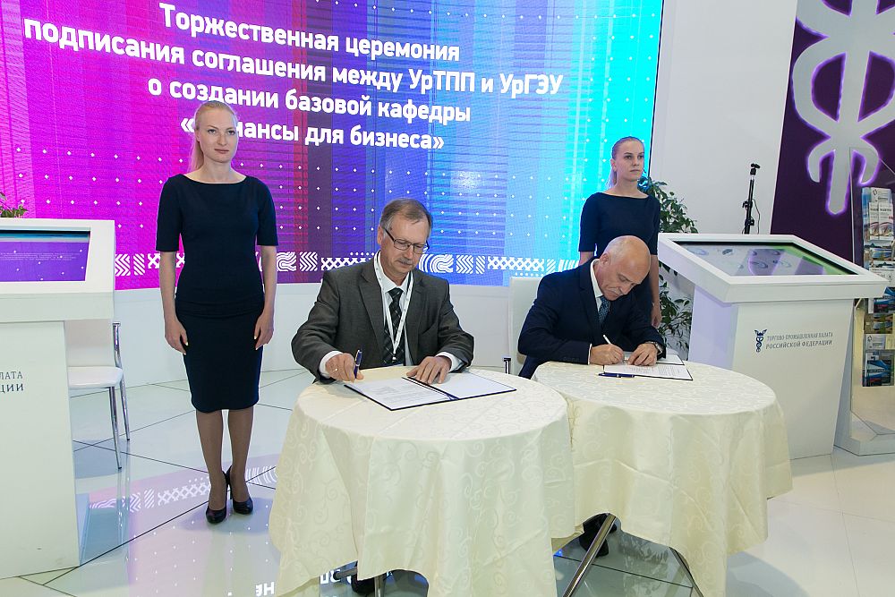 June 12, at the International Trade Fair INNOPROM, a signing of several agreements with the Ural Chamber of Commerce and Industry (CCI) took place, including on the establishment at USUE of a specialized Department of Finance for Business.