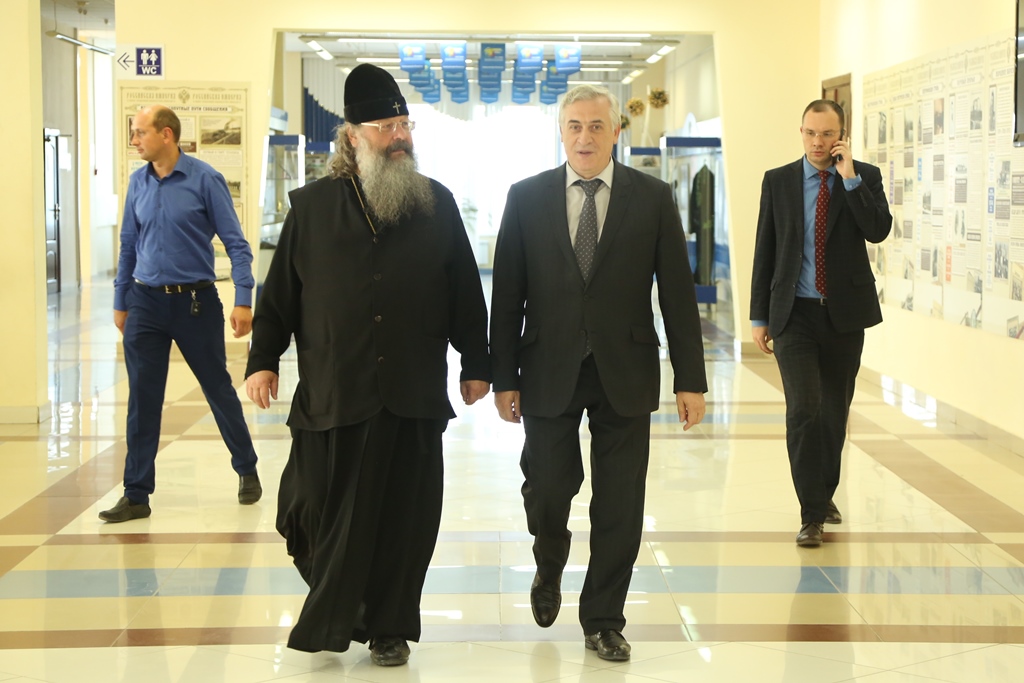 After the tour, Metropolitan Kirill and the Rector Yakov Silin discussed prospects of cooperation between the University and Metropolis in the framework of cultural and spiritual education of young people. Both parties noted the constructiveness of the dialogue and expressed hope for a long and strong friendship. At the end of the meeting, Metropolitan of Yekaterinburg and Verkhotury wrote his wishes and instructions in the USUE book of honorable guests.