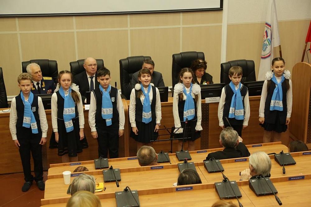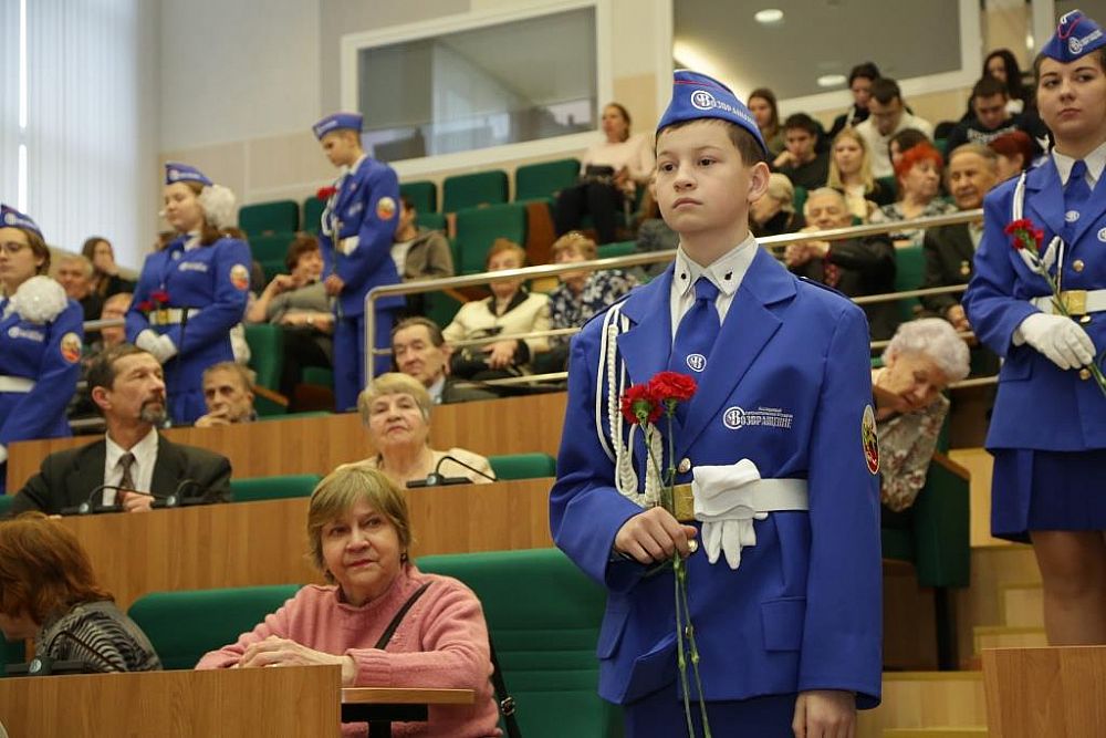 The meeting ended with a concert for veterans, which was given by high school and University students. The whole hall sang the Evening Song ("City above the free Neva").