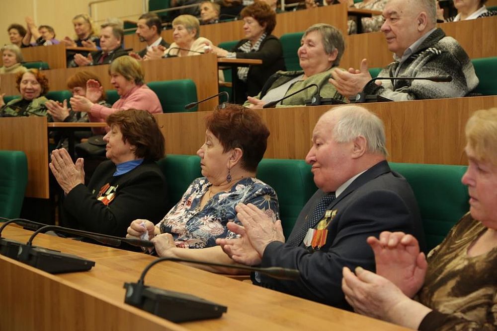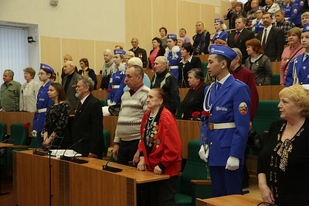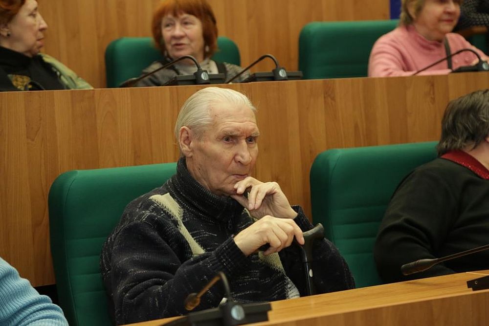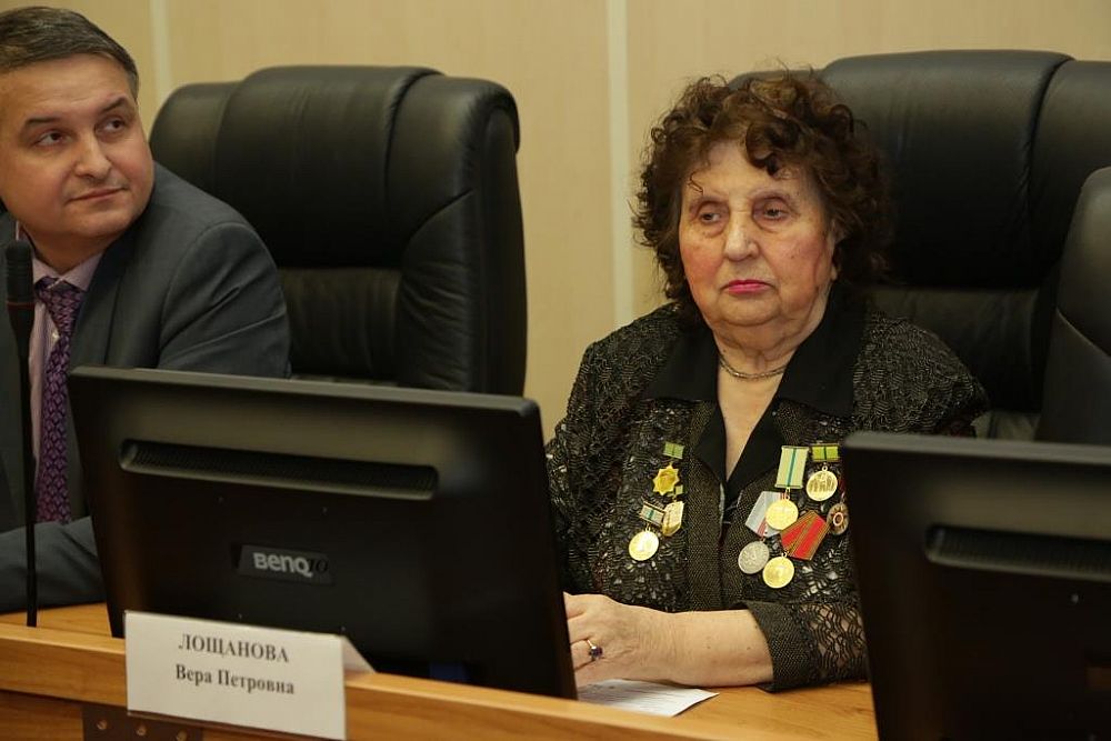 The chair of the Union of Siege Survivors in Yekaterinburg Vera Loshchanova said, "Dear comrades, we are children of besieged Leningrad, we were from two to twelve. Having survived the blockade and having learned all its horror from our parents and grandparents, we hold the memory of them and try to help each other." She read a congratulation from the Association of Besieged Leningrad Residents to the veterans of the Sverdlovsk region.