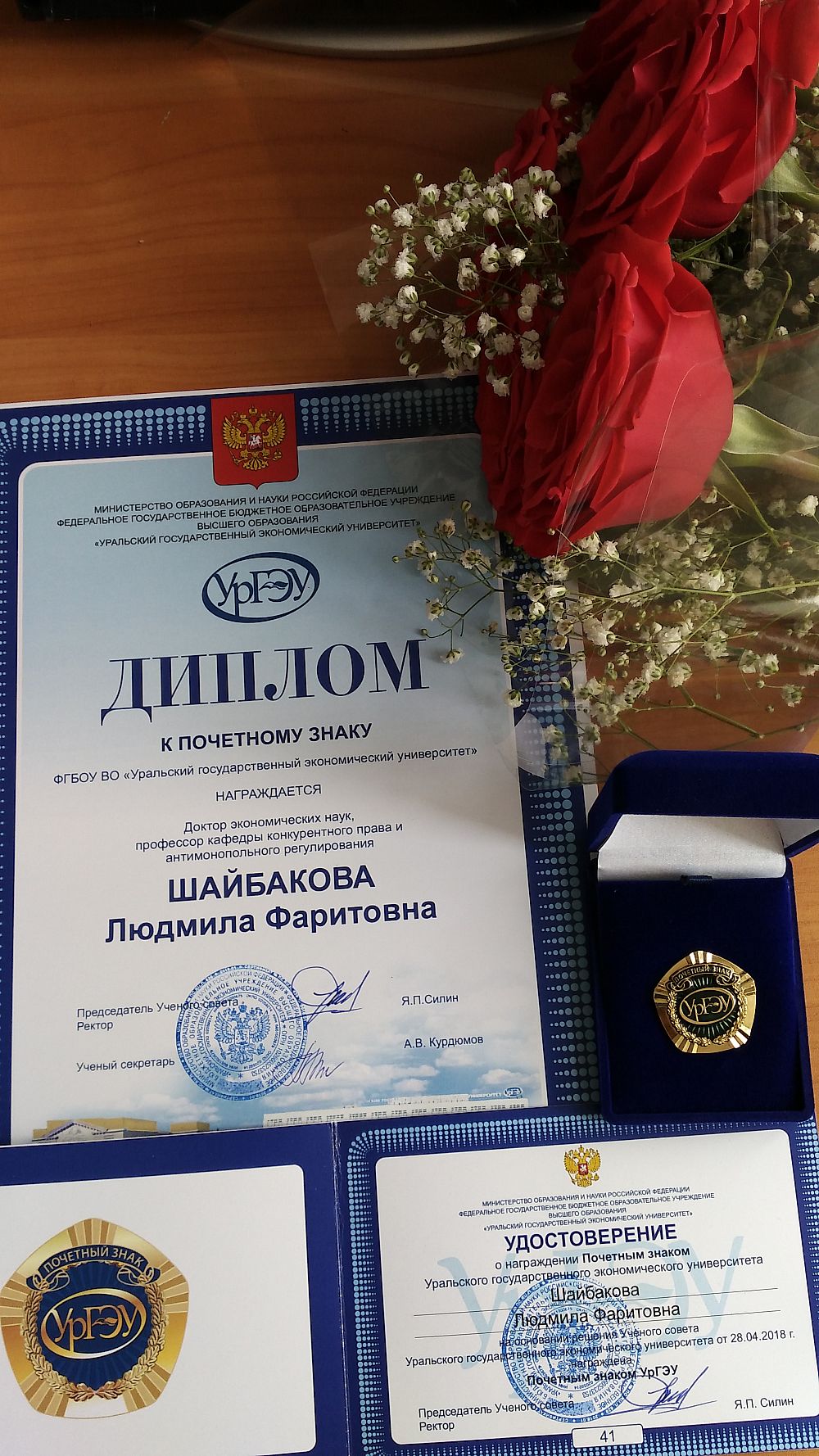 Looking back, Professor Shaibakova believes that her life was very harmonious. Over the years, she has come to realize that she follows the right way, and that life would lead her to science whatever profession she chose. She believes that science is her destiny. Ludmila Faritovna has many different awards. The most significant is the title "Honored Worker of Higher Professional Education of the Russian Federation". Now she is also the owner of the USUE Honorary Badge. "This is a significant reward, meaning the recognition by the organization which you work for," she says. "It's very nice and gives strength and desire to work on."