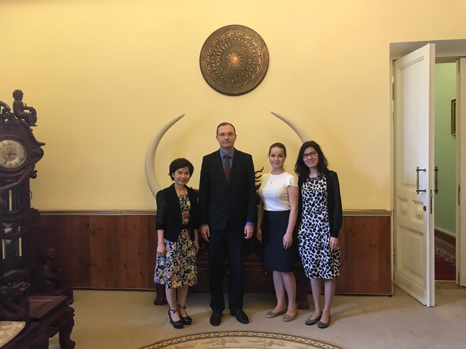 At the Embassy of the Socialist Republic of Vietnam, there was a meeting with the First Secretary, Head of the Department of Education, Ms. Nguyen Thi Mai Ti and the second secretary Nguyen Thi Kim Thu. Ms. Nguyen Thi Mai Ti noted the continuing positive development of bilateral relations between Russia and Vietnam in the field of education, "Every year about three thousand students-holders of our government scholarships leave for Russia to study and their number is constantly growing. Russian education is very much appreciated in Vietnam; the most in-demand specialties are economics, medicine and art"