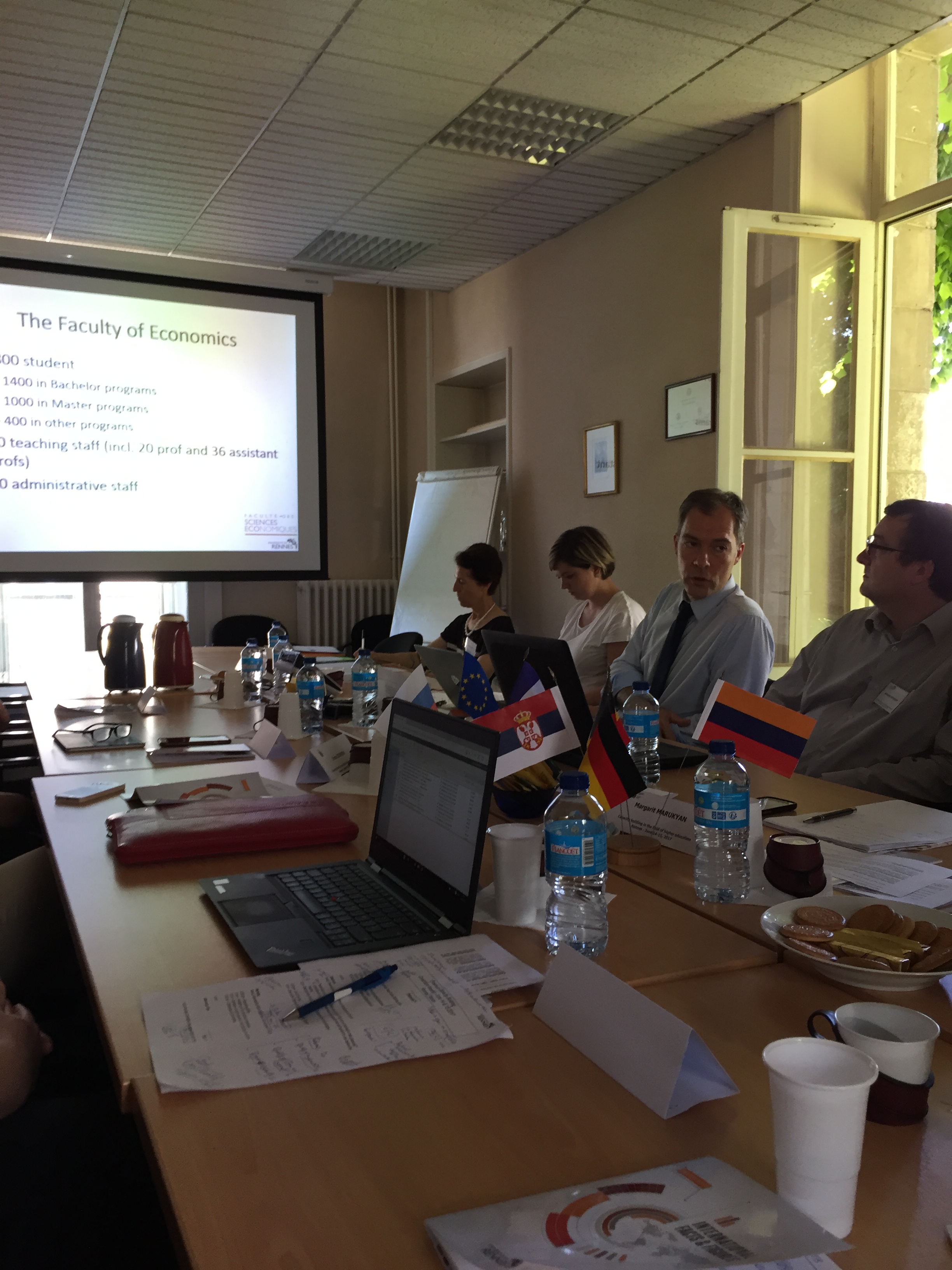 The participants of the meeting were the University of Rennes 1 (France), the University of Trier and the University of Flensburg (Germany), the Armenian State Economic University and the Russian-Armenian University (Armenia), the University of Namur (Belgium), Lobachevsky State University of Nizhny Novgorod, Ural State University of Economics (Russia), the University of Belgrade, and the University of Novi Sad (Serbia).