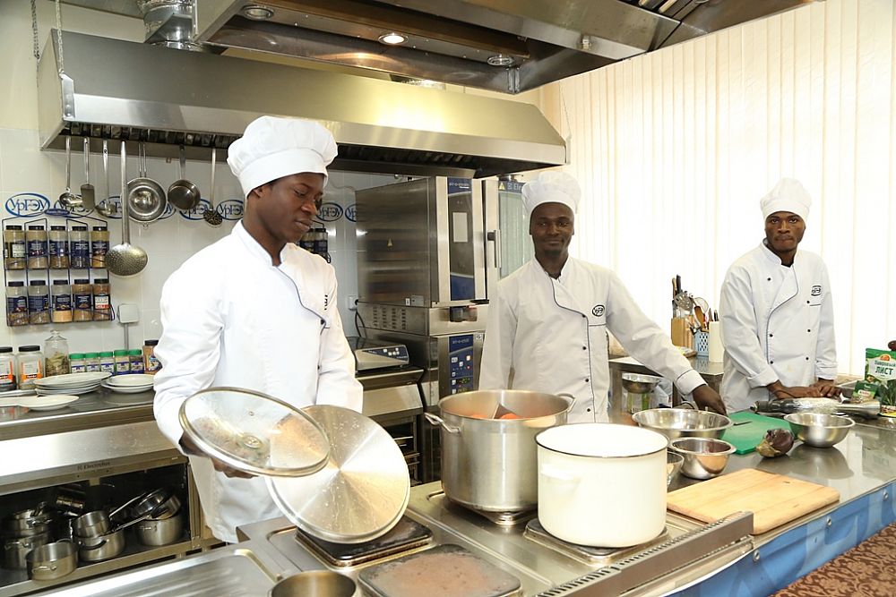 November 23, students from Cote d’Ivoire introduced the guests of a culinary master class to the national dish kédjénou, "Usually, everything we eat is very spicy but today there is only one chili in the dish – just for decoration. Now we will treat you with chicken with rice and vegetable puree." During the cooking, they talked about their country, traditions, and population.