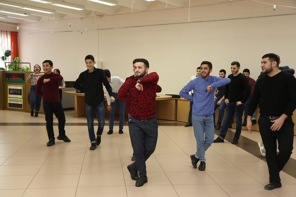 A master class from the lezghinka school «Khazar» was held by teachers Rasul Rasulzade and Muraz Niyazalov. Rasul stressed the importance of holding interethnic festivals, «We, as the bearers of culture, were invited to show and tell what the lezghinka is. Today, there will be a practical class. Such festivals as you have at USUE are important: here people become acquainted with culture of other nations. As much we are tight-knit, so strong we are.»