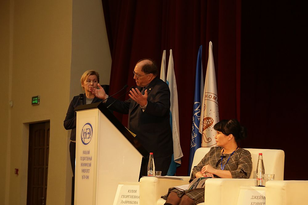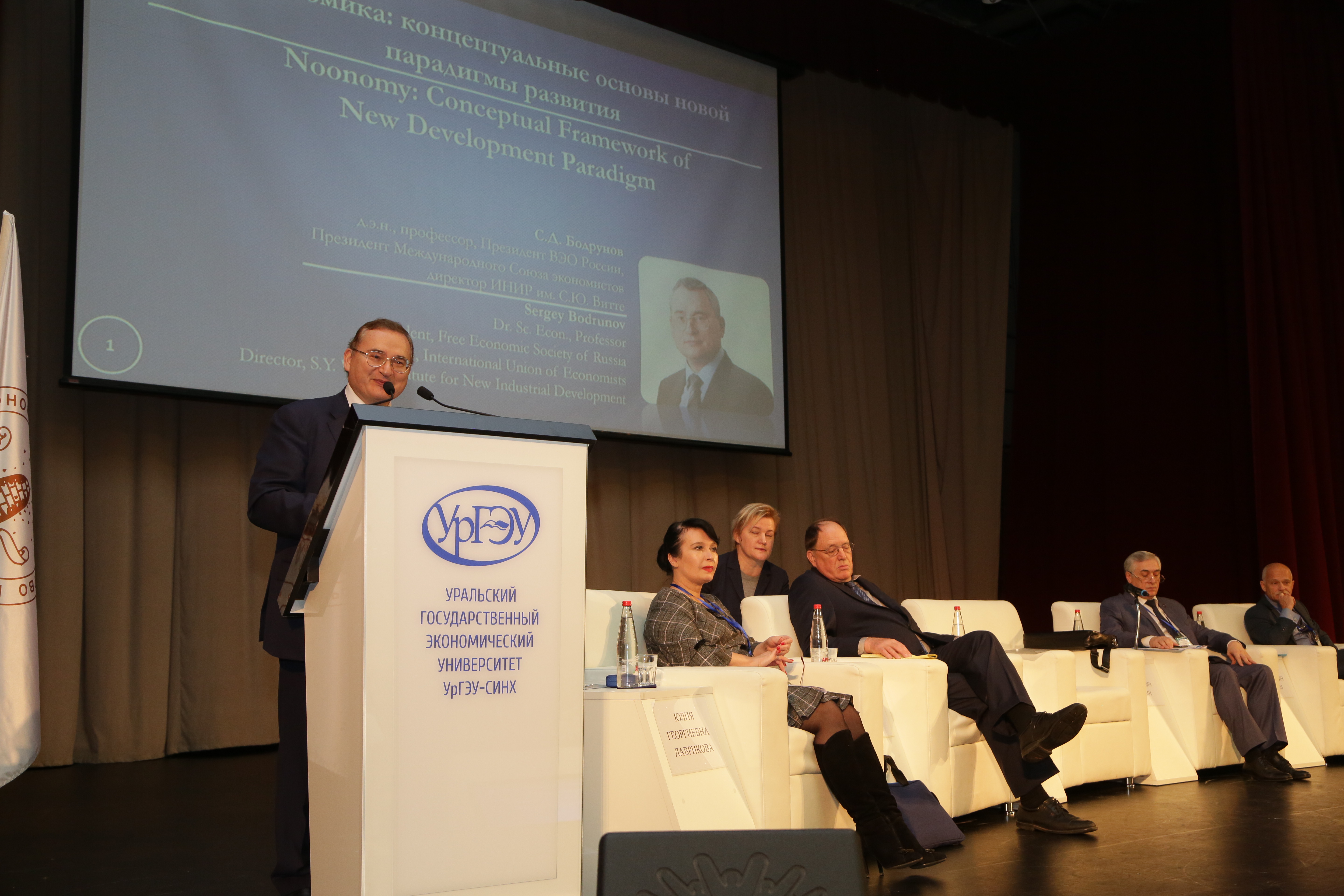 Sergey Bodrunov, Doctor of Economics, Professor, Director of the Institute for New Industrial Development n.a. S.Y. Witte, President of FES of Russia, a RAS expert and a USUE honorary professor, made a presentation “Noonomics: Conceptual Foundations of a New Development Paradigm”.