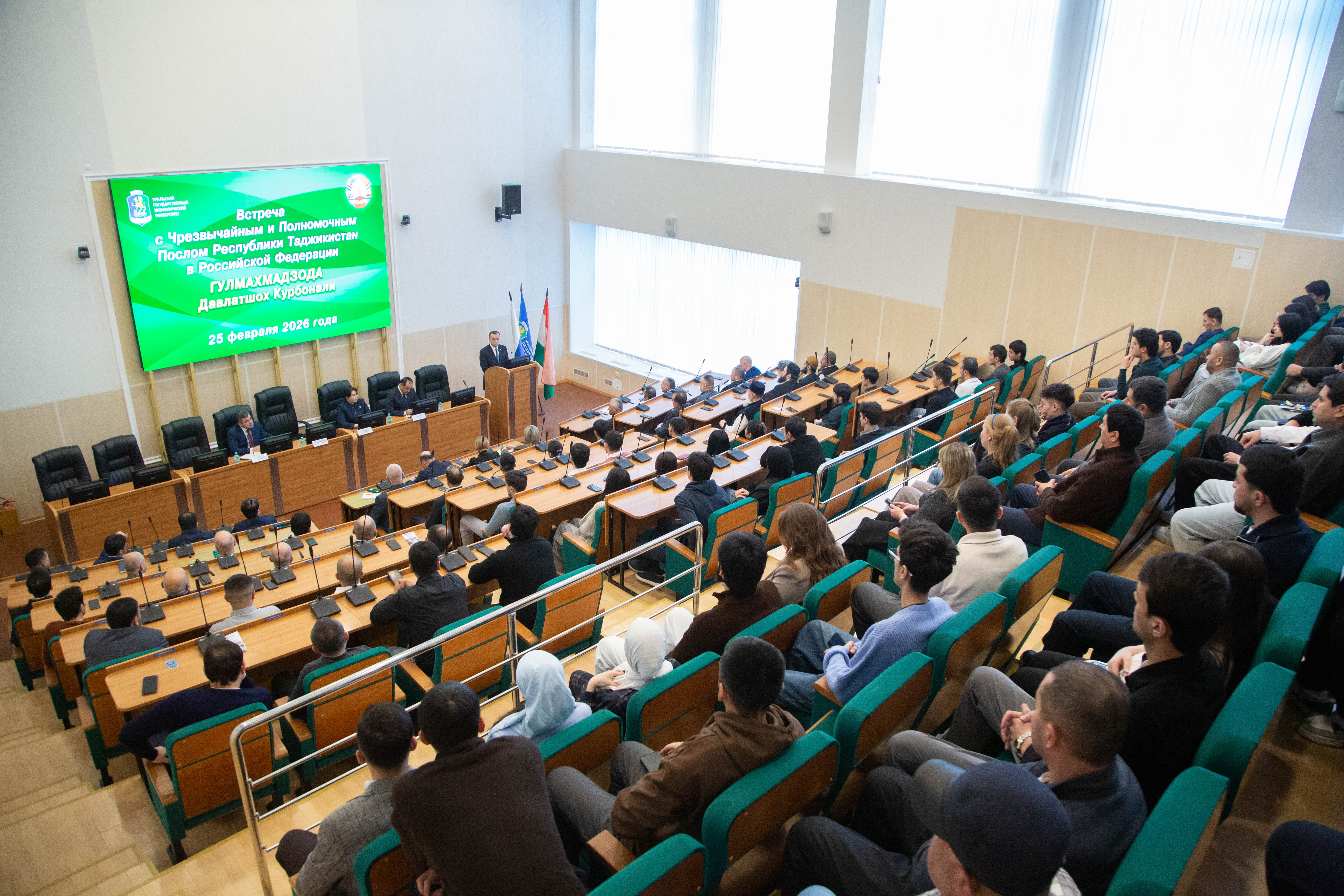 زار وفد من طاجيكستان جامعة الأورال الحكومية للاقتصاد. ناقش القائم بأعمال رئيس الجامعة ياكوف سيلين والسفير فوق العادة والمفوض لجمهورية طاجيكستان لدى الاتحاد الروسي دافلاتشوها جولماخمادزودا آفاق التعاون في مجال التعليم.