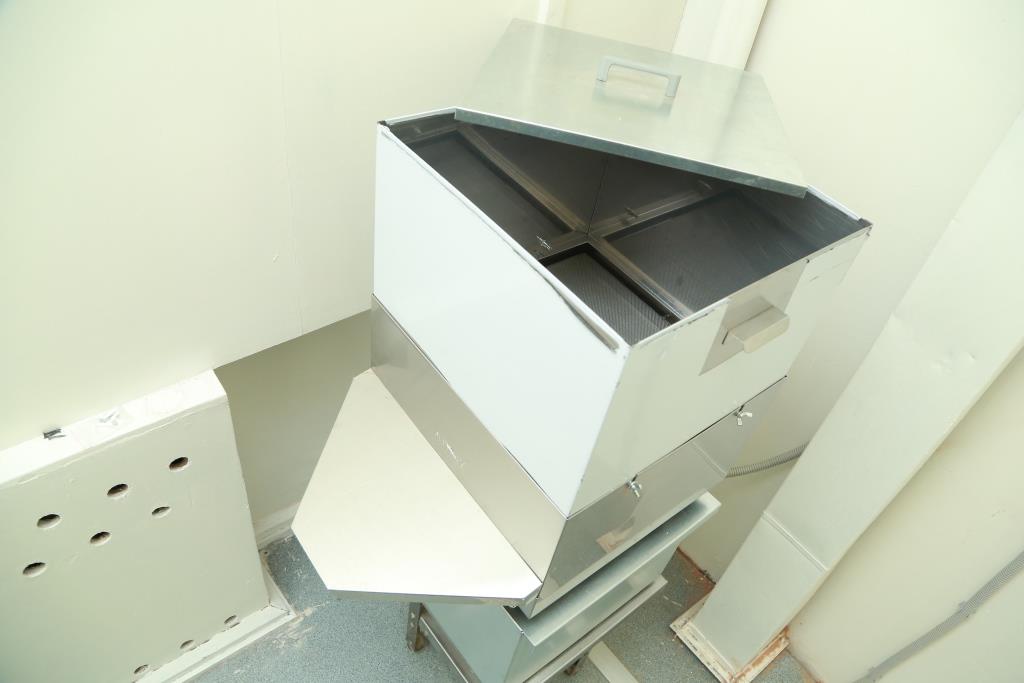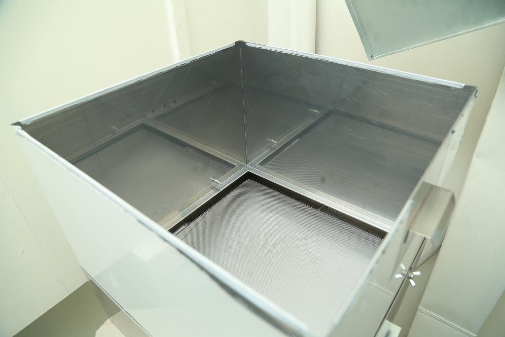 With the help of a measuring container, the flour for processing is poured into the hopper in the amount of no more than 5 kg, so as not to damage the sieve. Thus, about 50 kg of flour is cleared per day. One person is required for this process and only for loading of a flour. After that, the device works independently.