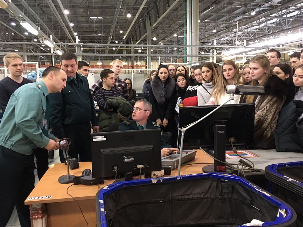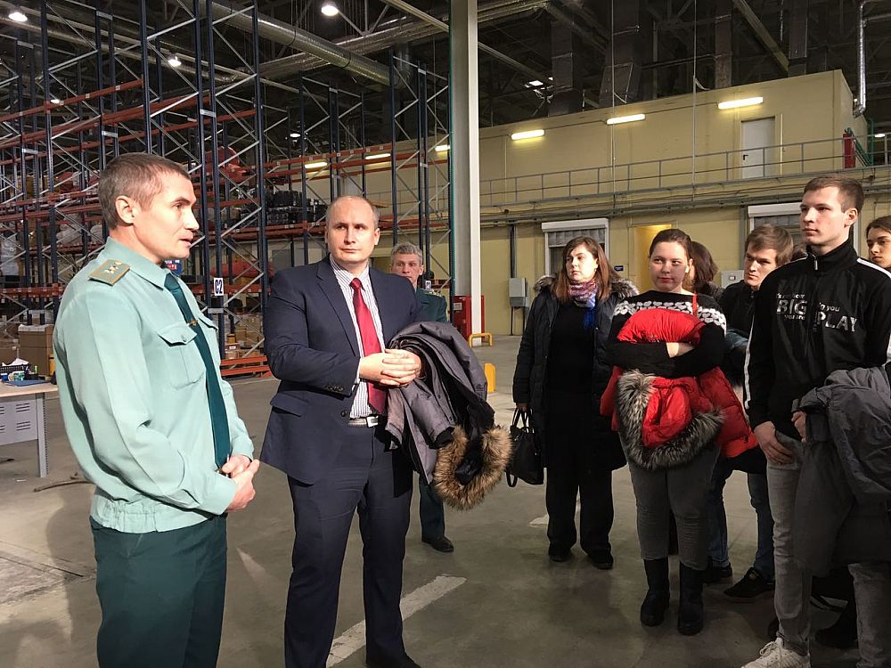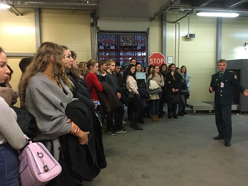 Late February 2018, USUE fourth-year students under the supervision of the chair of the Department of International Business Viktor Kovalyov and the associate professor of the Department of International Business Oksana Falchenko participated in field trips to the Koltsovo customs.