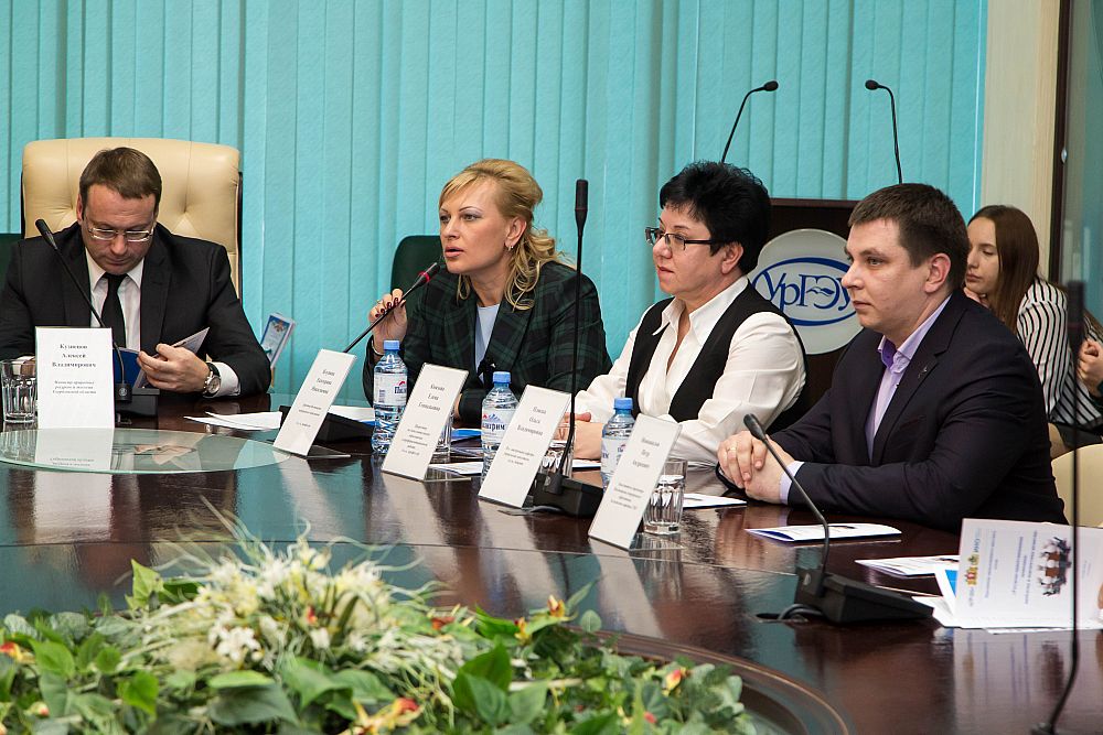 На открытии Круглого стола участников поприветствовали Алексей Кузнецов, министр природных ресурсов и экологии Свердловской области и Елена Князева, проректор по дополнительному образованию и профориентационной работе УрГЭУ.