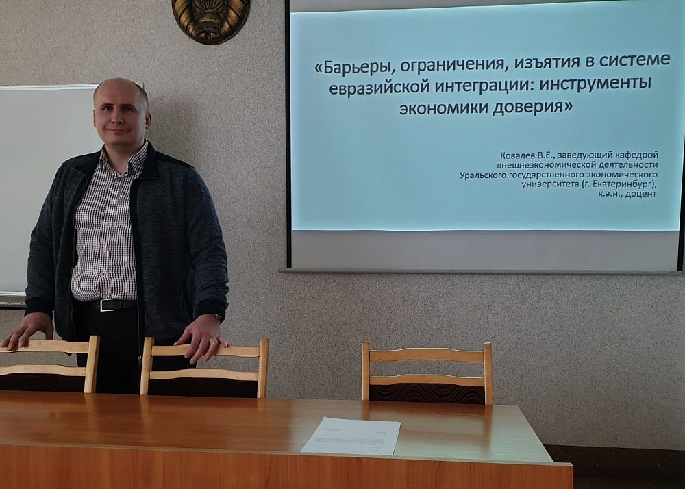 Besides, Viktor Kovalev delivered a public lecture for students and teachers of the BSEU School of International Economic Relations devoted to trade and economic cooperation in the EAEU system. Based on case studies and practical examples, Belarusian students and faculty members were able to see the positive and negative aspects of integration processes in the modern world economy, assess the extent of changes in the regulatory framework affecting customs regulation of the Republic of Belarus and Russia when forming the EAEU, and receive audience relevant and useful information about the prospects for further cooperation between our countries.