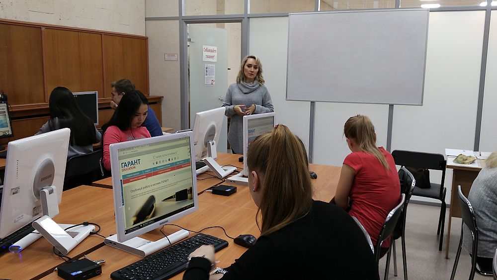 Руководитель Учебного центра ООО «Компания ГАРАНТ-ЕКАТЕРИНБУРГ» Марина Галкина и менеджер Учебного центра ООО «КонсультантПлюсСервис» Ирина Наумова в течение нескольких учебных занятий рассказали студентам о возможностях современных правовых информационных систем, показали особенности подбора нормативно-правовых актов и их использования в профессиональной экономической деятельности.