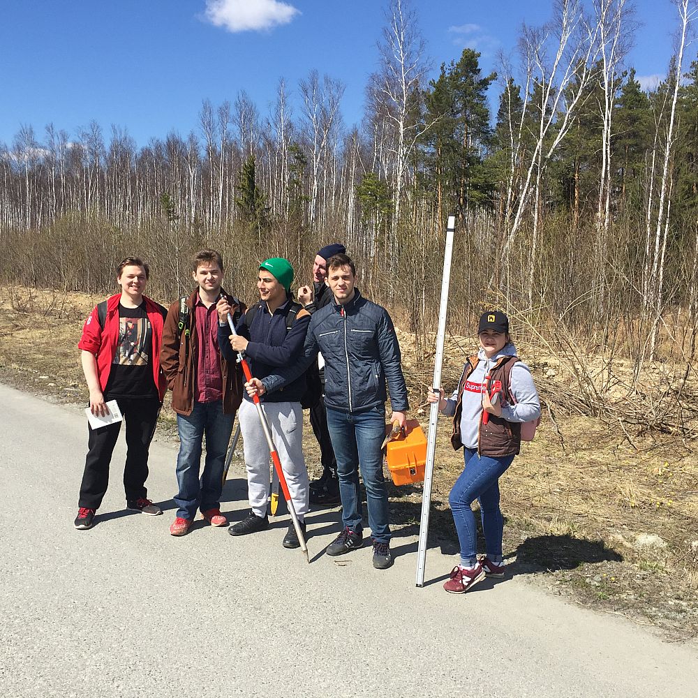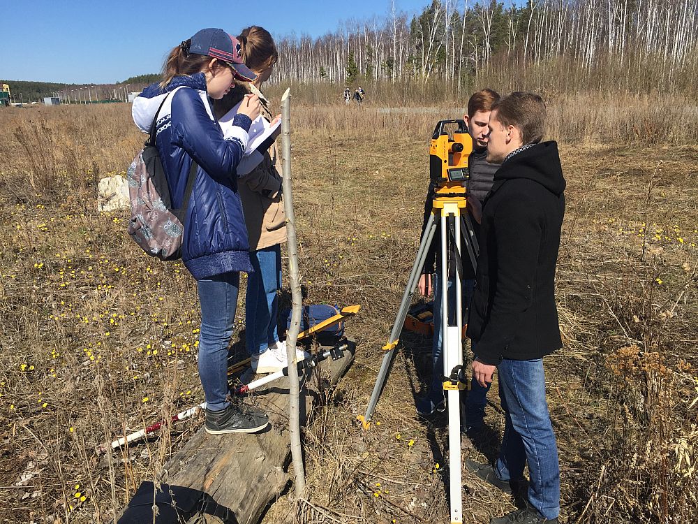 Students of group ZK-15 visited the Karaseozersk-2 construction site. At the initiative of an Associate Professor of the Department of Regional and Municipal Economics and Management Alexei Pestryakov, students completed a set of jobs on the topic "Field surveys for designing linear structures".