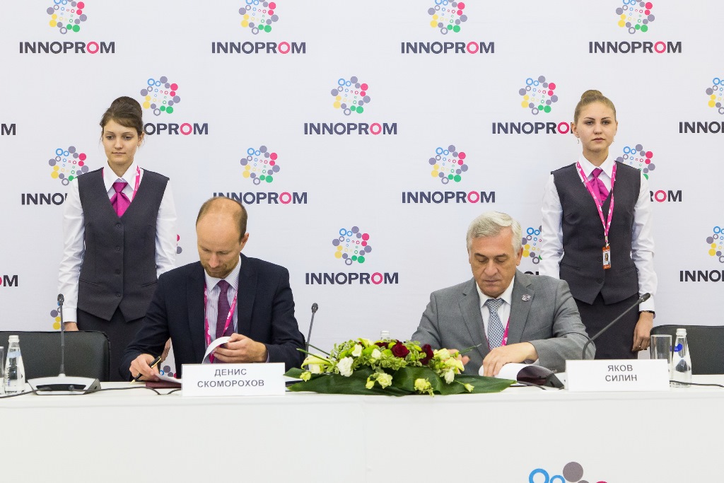July 12, at the International Trade Fair "Innoprom", taking place in Yekaterinburg-Expo center, Ural State University of Economics signed an agreement on cooperation with the Sverdlovsk region "Universitetsky" technopark of high technologies. General Director of the technopark Denis Skomorokhov and USUE Rector Yakov Silin agreed to cooperate in the development of the innovation ecosystem in the region.