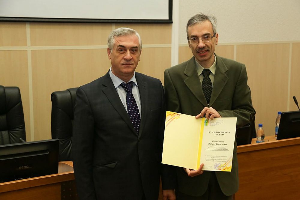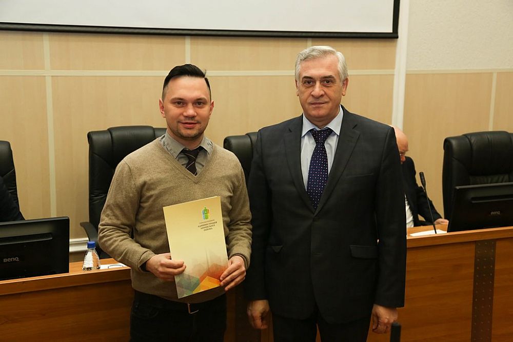 A Certificate of Merit from the head the Leninsky district Administration Dmitry Nozhenko was handed to the senior teacher of the Department of Foreign Languages ??Yevgeny Belov.