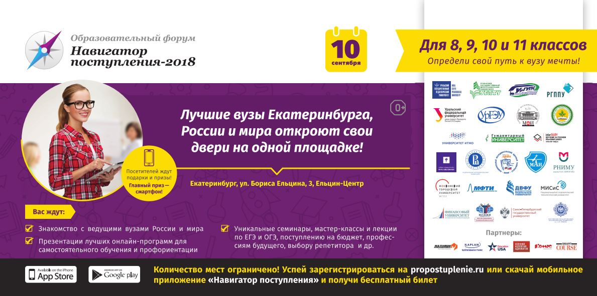 "Admission Navigator" is your opportunity to resolve all issues with future education in one day. See you on September 10 at Yeltsin Center (Yekaterinburg, ul. B. Yeltsin, Building 3).