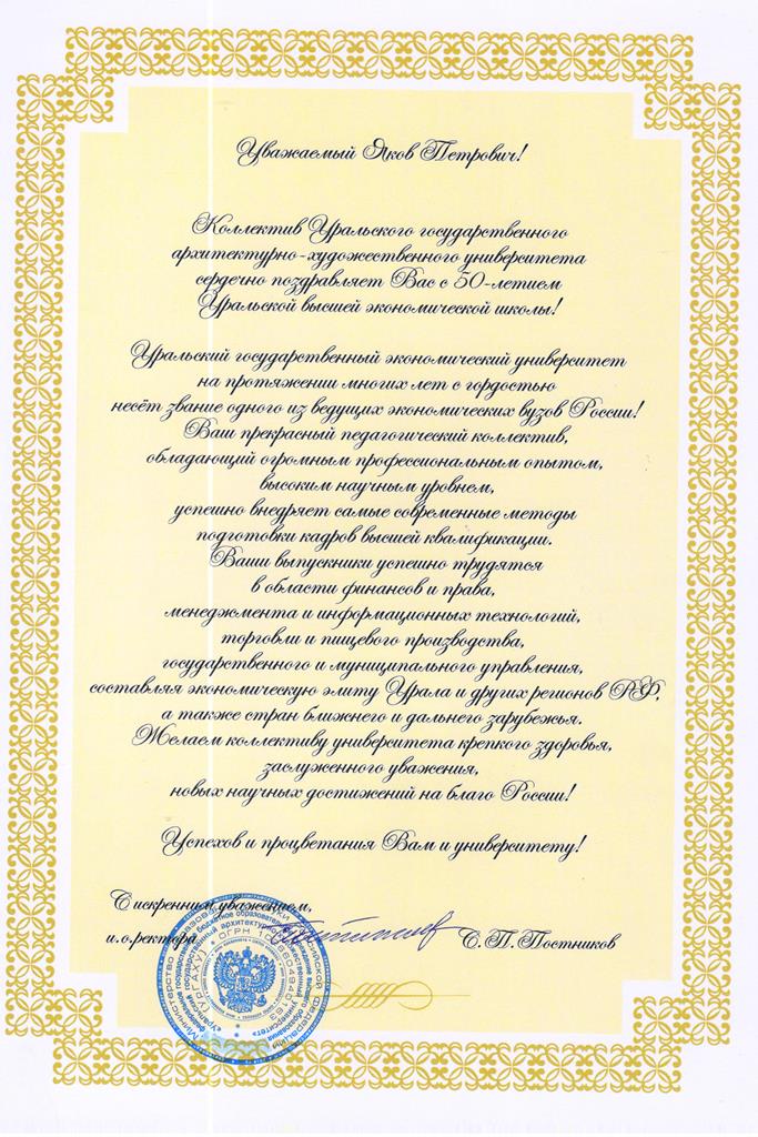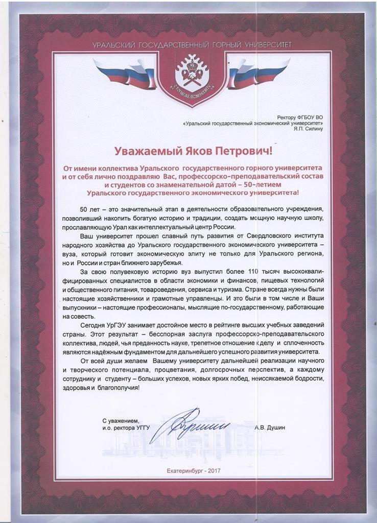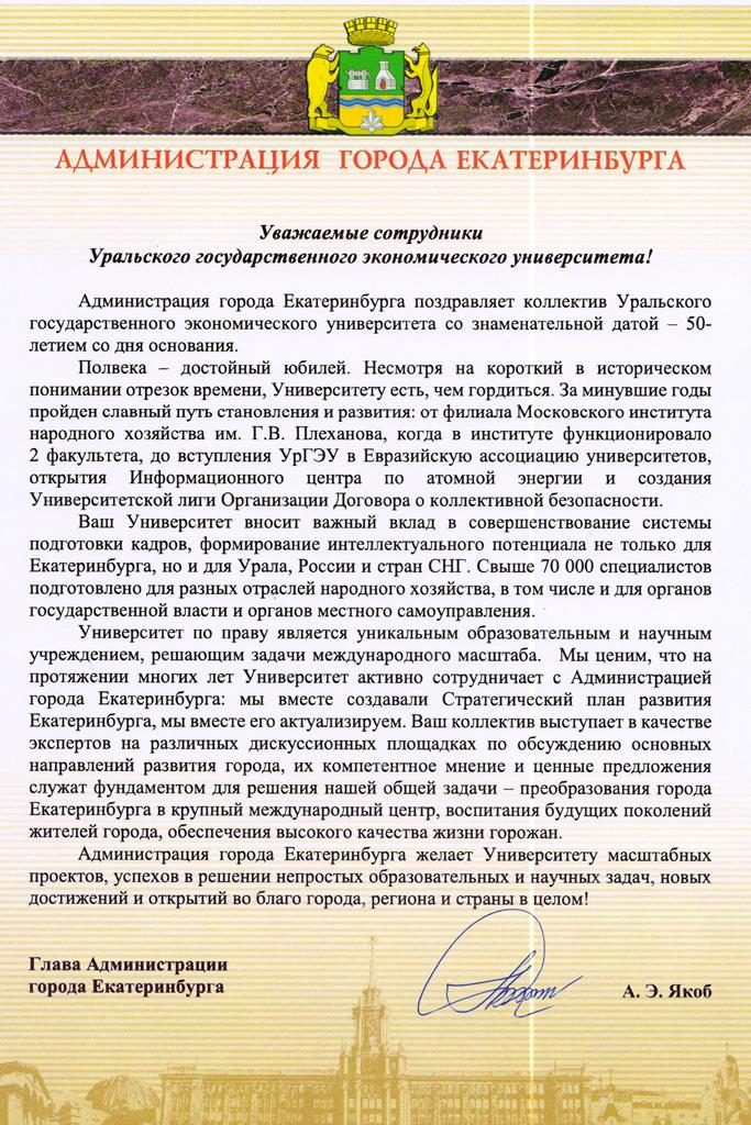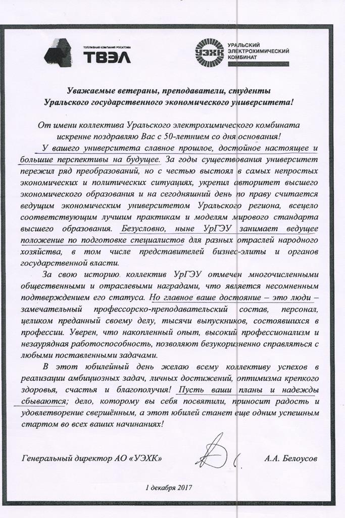 Earlier, the Federal Agency for Youth Affairs (Rosmolodezh) congratulated Ural State University of Economics on the 50th anniversary.