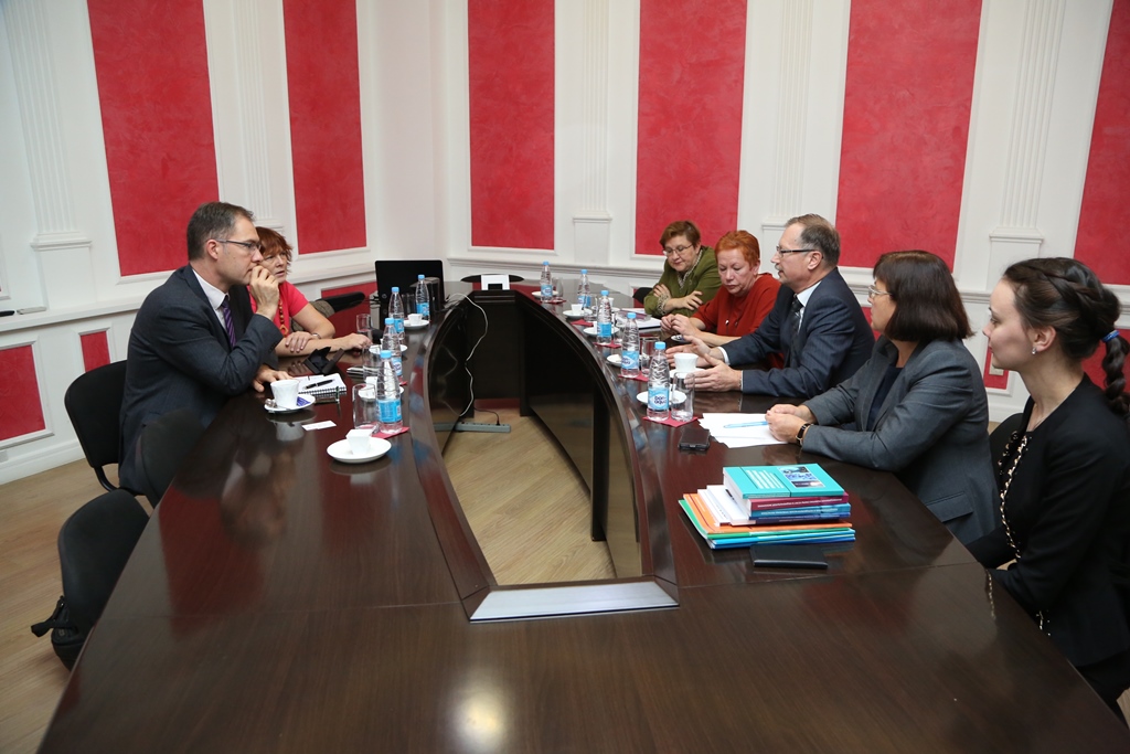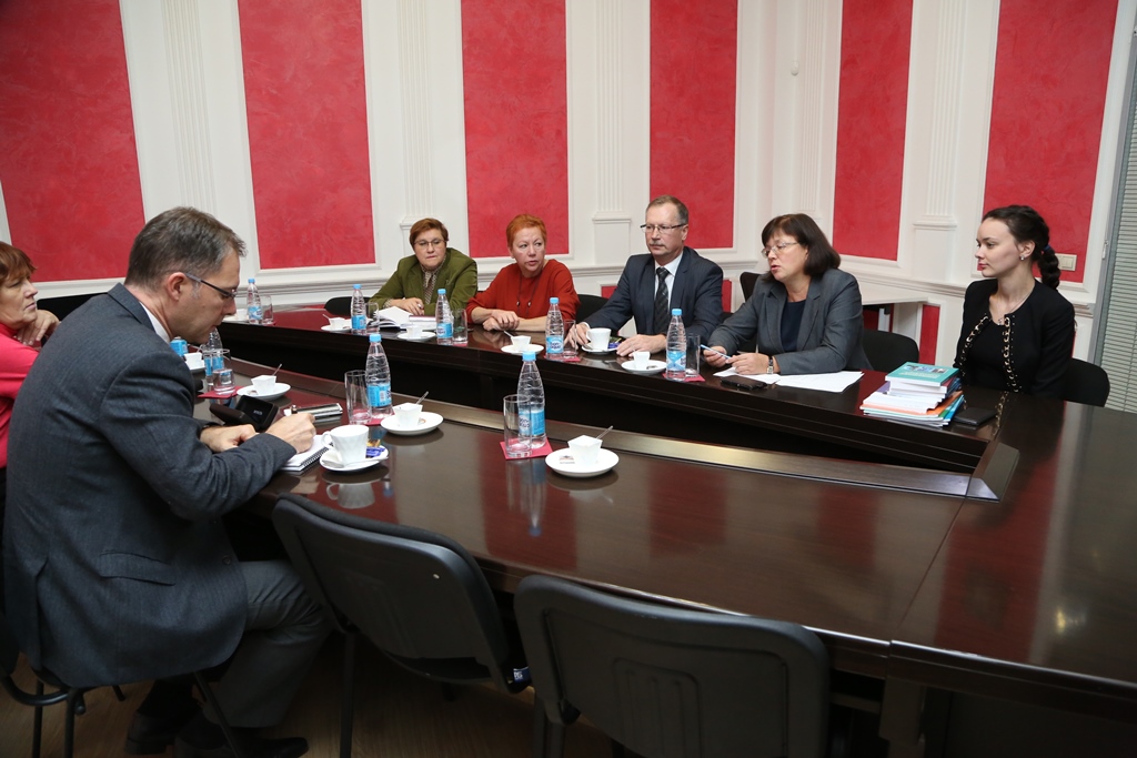 From USUE the meeting was attended by Vice-Rector for Academic Affairs Sergey Rogozhin, associate professor at the Department of Public and Municipal Administration, director of international programs Marina Vidrevich, Doctor of Economics, Professor of the Department of Public and Municipal Administration Natalia Vlasova, and others.