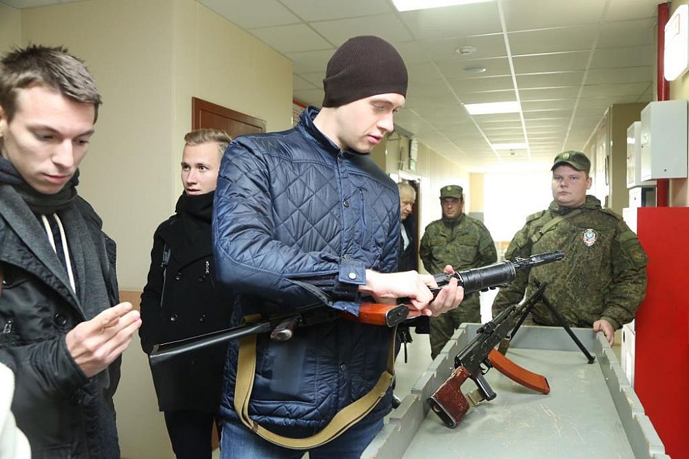 The students became acquainted with the life of military personnel in the barracks, held small arms in their hands, went into the Temple of St. George, and had lunch in the soldiers' canteen. The most interesting was the exposure to the specialized system support vehicle and an autonomous launching platform YARS.