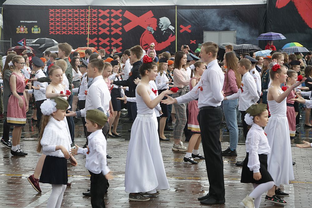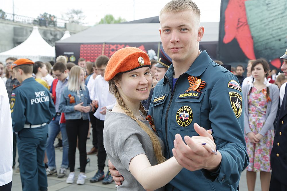 Music compositions of the war years warmed the hearts of participants and guests, and then the waltzers were welcomed by drummers. The action started with congratulations of USUE rector Yakov Silin. “I think, our event, which is now covering many cities, would take over the whole country. As the Immortal Regiment, Waltz of Victory is one of the opportunities to thank our ancestors. It will be a bridge of memory and gratitude of new generations to their grandfathers and great-grandfathers," Yakov Silin congratulated the audience.
