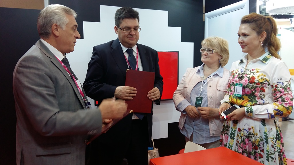 July 13, at the International Trade Fair “INNOPROM" held at Yekaterinburg-Expo, the Rector of Ural State University of Economics Yakov Silin met with the Director General of HeadHunter agency Mikhail Zhukov. They agreed on long-term cooperation and signed an additional agreement on extending the term of the current agreement.