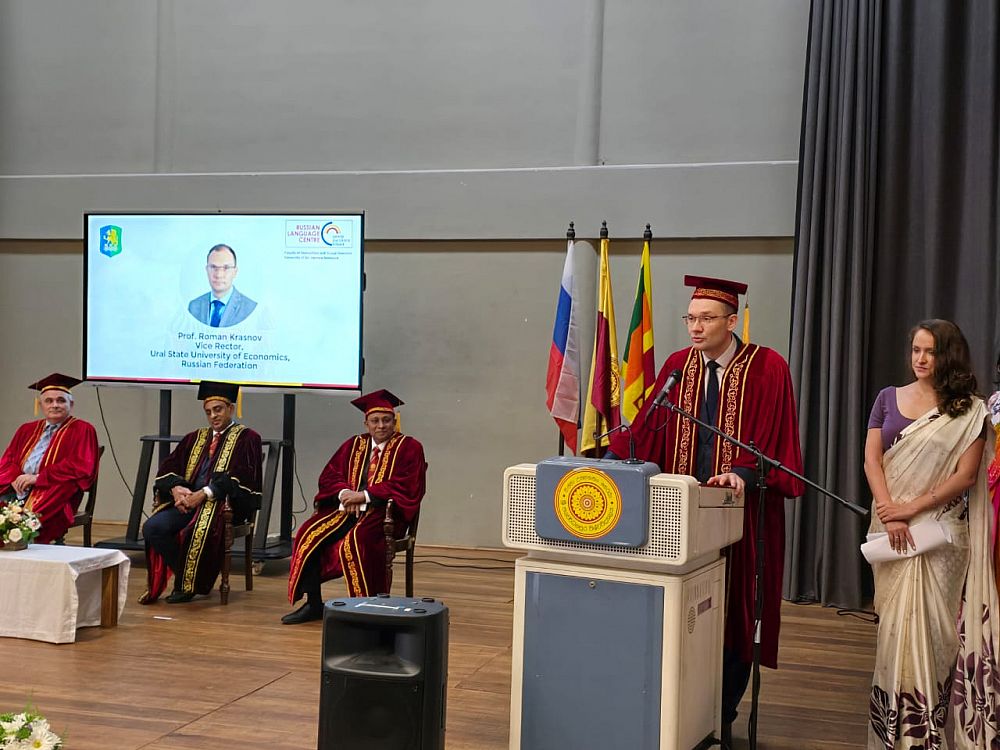 أقام مركز اللغة الروسية التابع لجامعة أورال الحكومية للاقتصاد، ومقره جامعة سري جايواردينبورا في كولومبو، سريلانكا، حفل تخرجه الأول. وحضر الحفل رومان كراسنوف، نائب رئيس جامعة أورال الحكومية للاقتصاد للعمل الاجتماعي وسياسات الشباب.