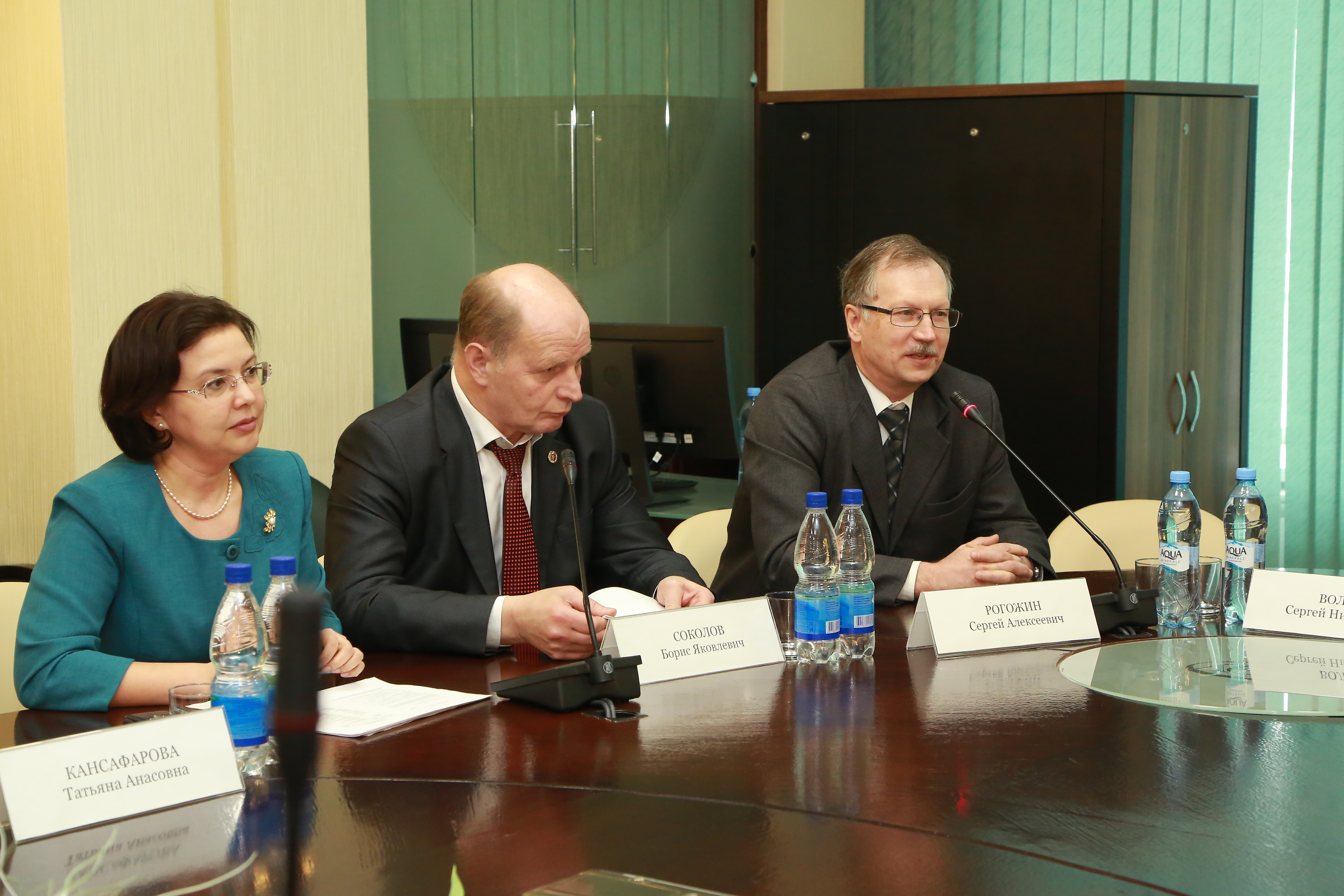 The meeting was attended by deputy head of the Sverdlovsk OFAS Russia Sergey Volkov, Rector of the Institute for Regional Development under the Ural Chamber of Commerce and Industry Vladimir Brylin, executive vice president of the Sverdlovsk Regional Union of Industrialists and Entrepreneurs Tatyana Kansafarova, and the president of the Nizhny Tagil Chamber of Commerce and Industry Boris Sokolov. USUE at the meeting was represented by Vice-Rector for Academic Affairs Sergey Rogozhin, Director of the Institute of Finance and Law Maxim Maramigin, members of the Department of Competition Law and Antimonopoly Regulation, and students majoring in Economics and Law.