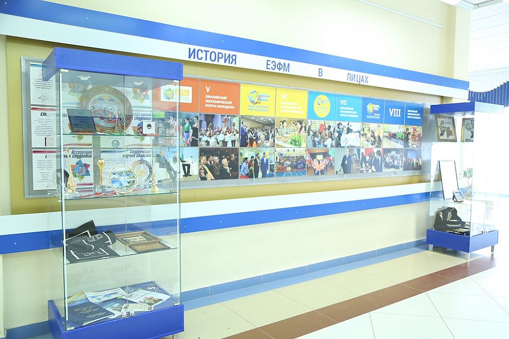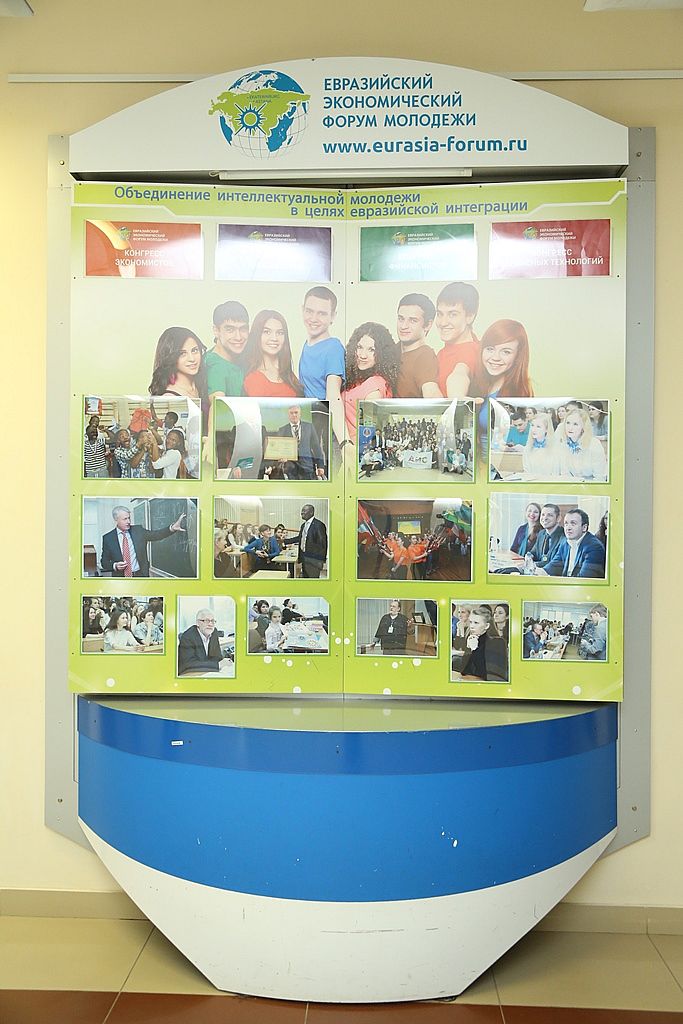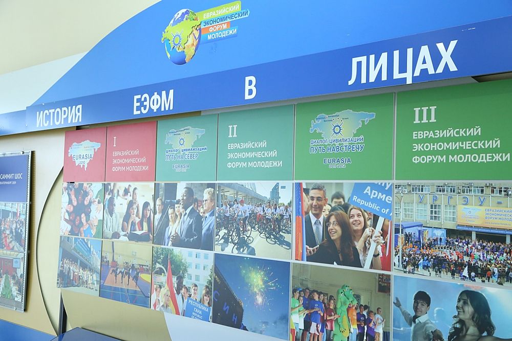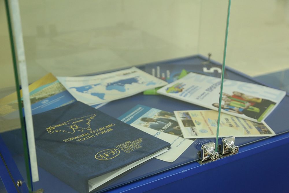 В УрГЭУ обновилась выставка, посвященная Евразийскому экономическому форуму молодежи. Новые экспонаты можно увидеть в холле второго этажа главного здания университета.