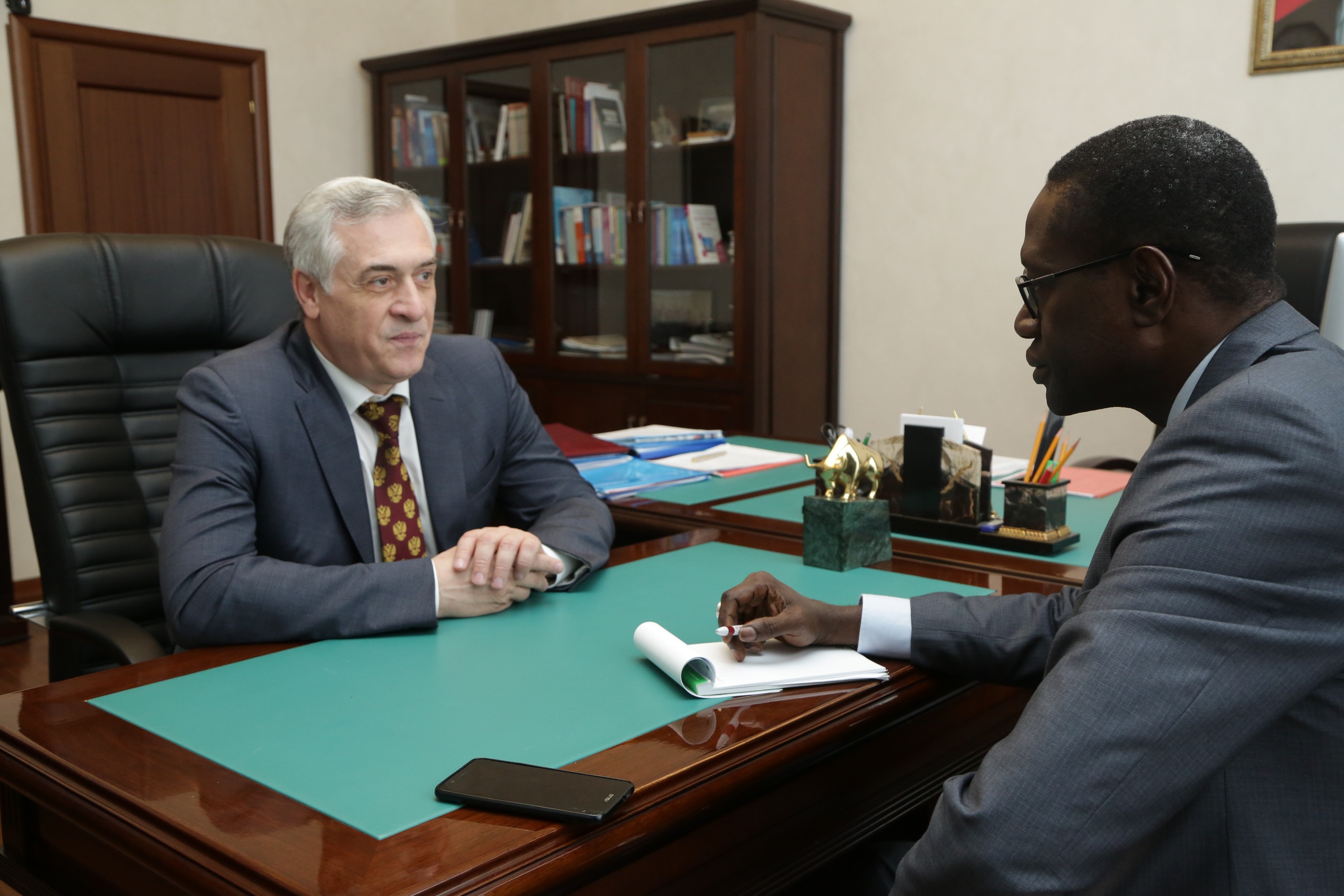 USUE Rector Yakov Silin met with Suleiman Anta Ndiaye, minister-counsellor, head of the economic department of the Embassy of Senegal in the Russian Federation. At the meeting, they discussed some issues related to cooperation between USUE and the Republic of Senegal.