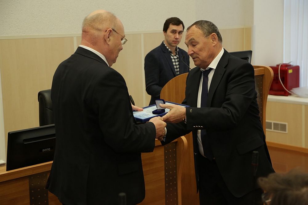 At an extraordinary meeting of the USUE Academic Council, Rector Yakov Silin presented a diploma and a badge "Honorary USUE Graduate " to Victor Ganienko . He became the 35th of this award winner. The badge is a symbol of recognition of merits and an expression of gratitude to the graduates, who contribute to the growth of the prestige of the University.